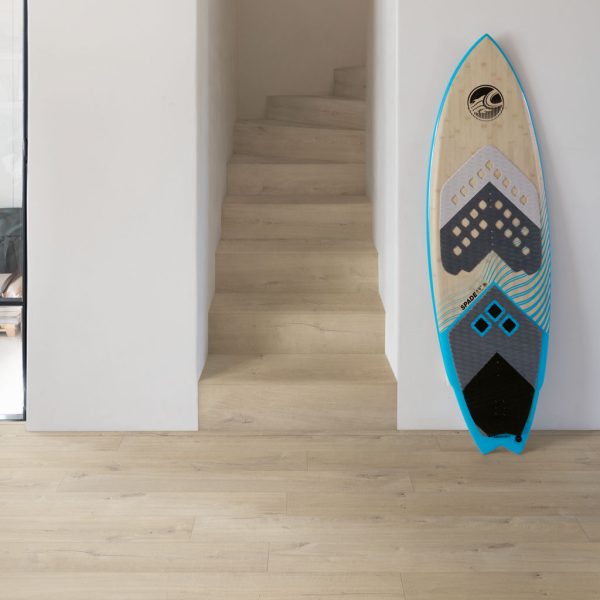 QuickStep Impressive – Mã màu IM1856 nổi bật với sắc gỗ sồi nâu-be trung tính, mang lại cảm giác ấm áp, tự nhiên và dễ chịu cho không gian sống. Bề mặt hoàn thiện mờ nhẹ với hiệu ứng textured/brushed giúp vân gỗ trở nên chân thực và mềm mại hơn, trong khi đường vát Genuine Bevel ở 4 cạnh làm tăng chiều sâu và nhấn mạnh vẻ tự nhiên của từng tấm ván.